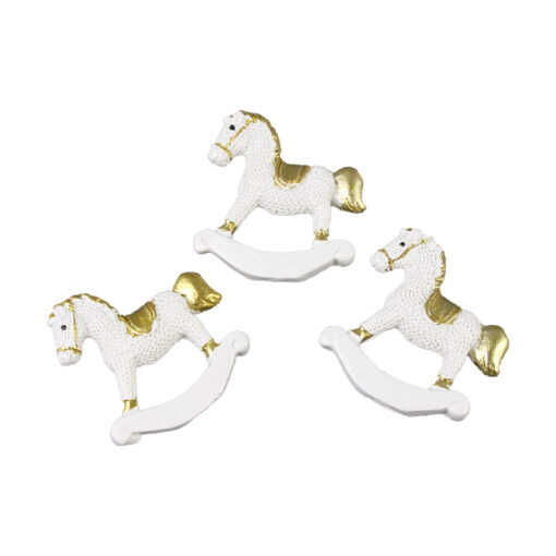 Set 3 Cai balansoar din rasina 4 CM, alb/auriu