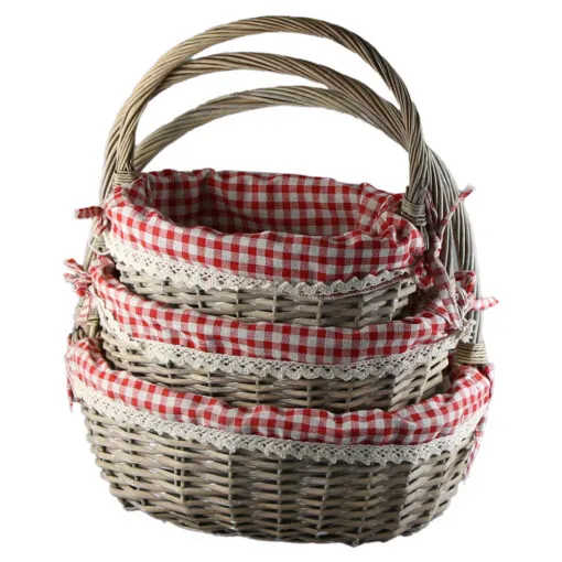 Set 3 cosuri din rachita cu maner si husa 38×28 CM, carouri rosii