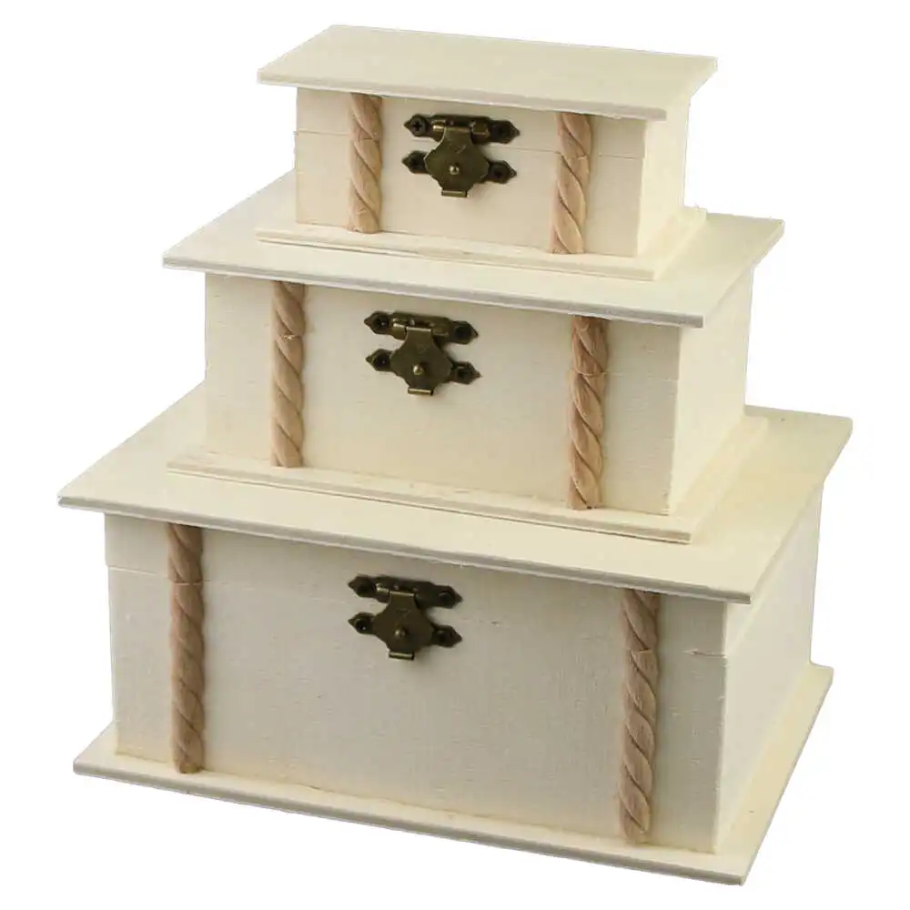 Set 3 Cutii din lemn natural, Hobby, 18x13x8 cm, cu snur, de decorat