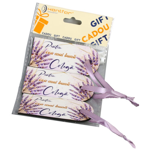 Set 3 Etichete din lemn „Pentru cea mai buna Colega”, 9×4 CM, Lavanda