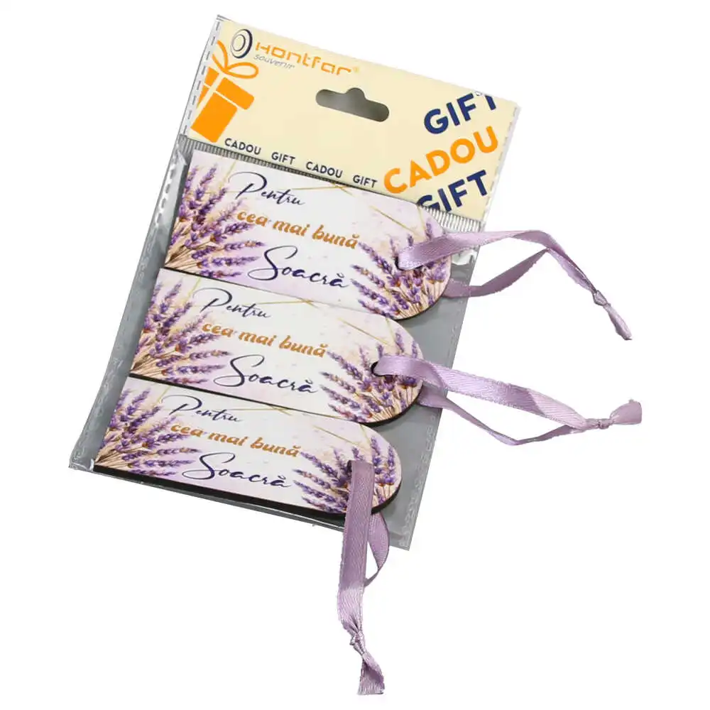 Set 3 Etichete din lemn „Pentru cea mai buna Soacra”, 9×4 CM, Lavanda