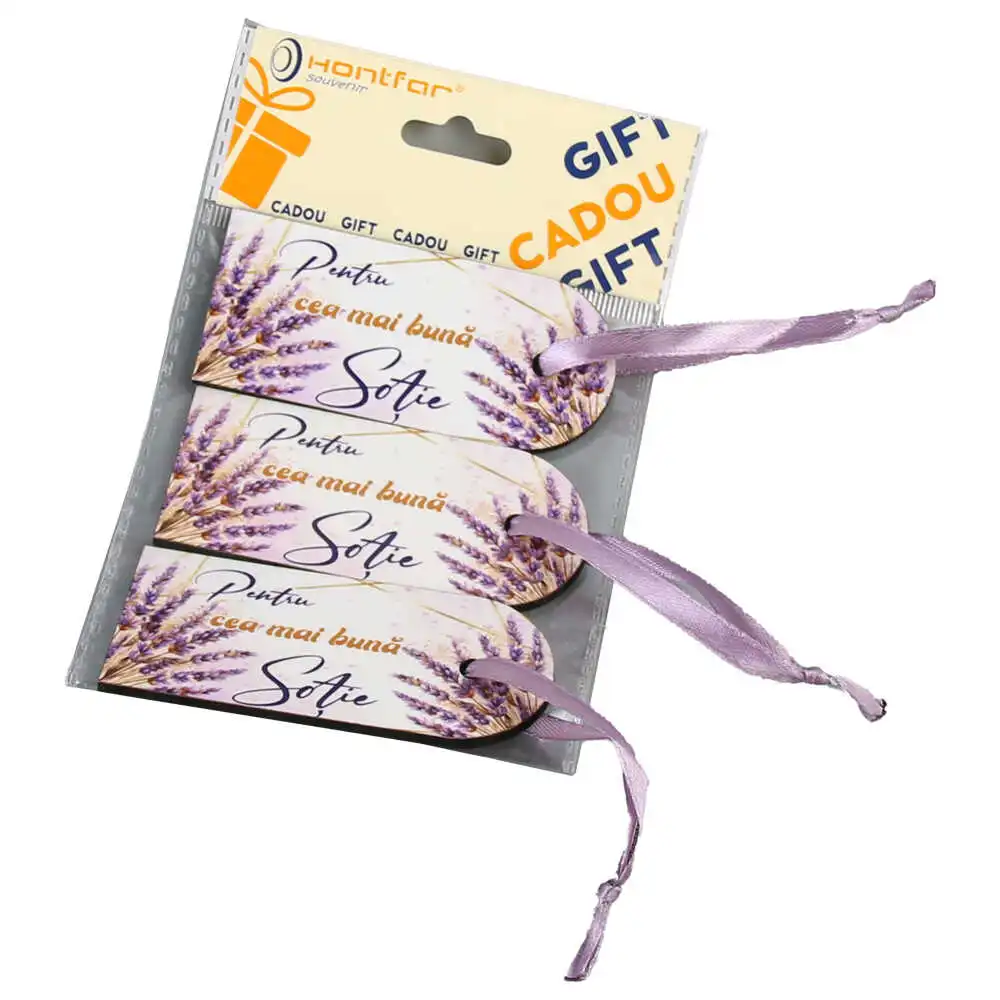 Set 3 Etichete din lemn „Pentru cea mai buna Sotie”, 9×4 CM, Lavanda