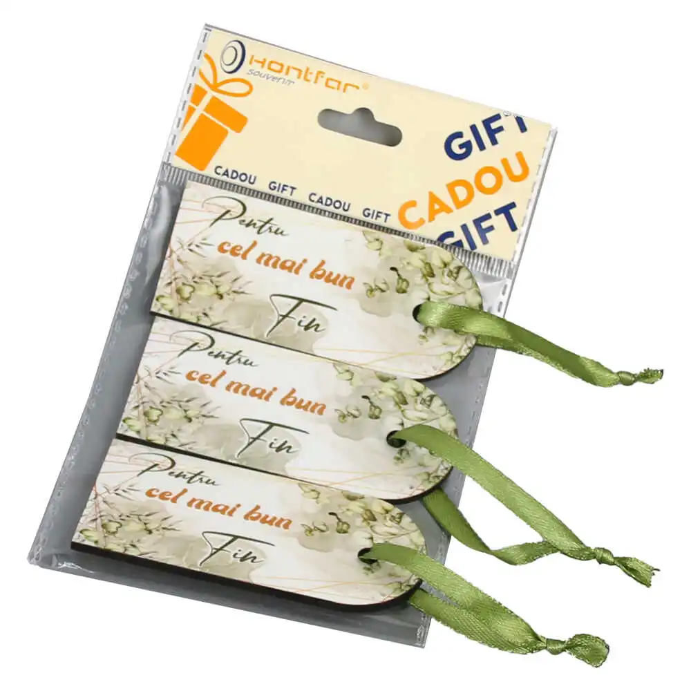 Set 3 Etichete din lemn „Pentru cel mai bun Fin”, 9×4 CM