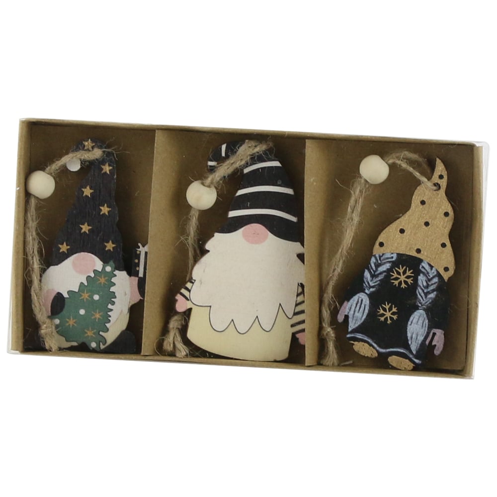 Set 3 ornamente de brad cu agatar 8 CM Spiridus, din lemn