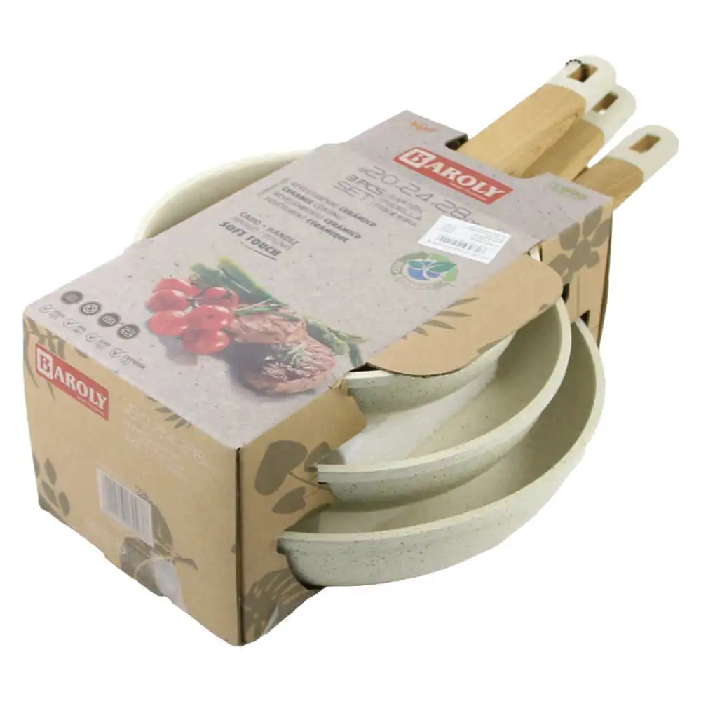 Set 3 tigai din aluminiu, 20/24/28 CM, Baroly, crem