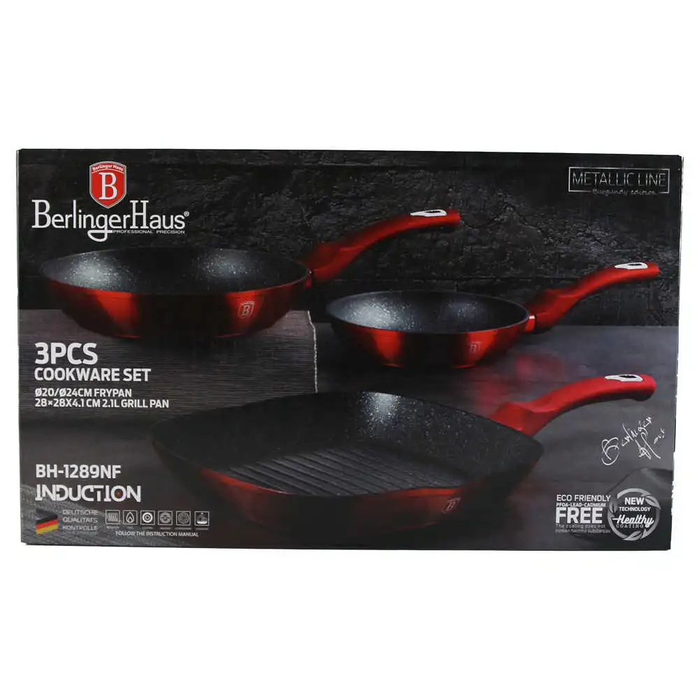 Set 3 tigai marmorate antiaderente, Burgundy Metalic Line, Berlinger Haus