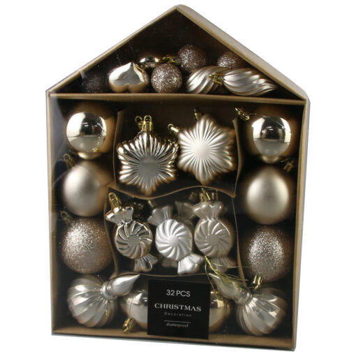 Set 32 globuri pentru brad, din plastic, crem, Casuta