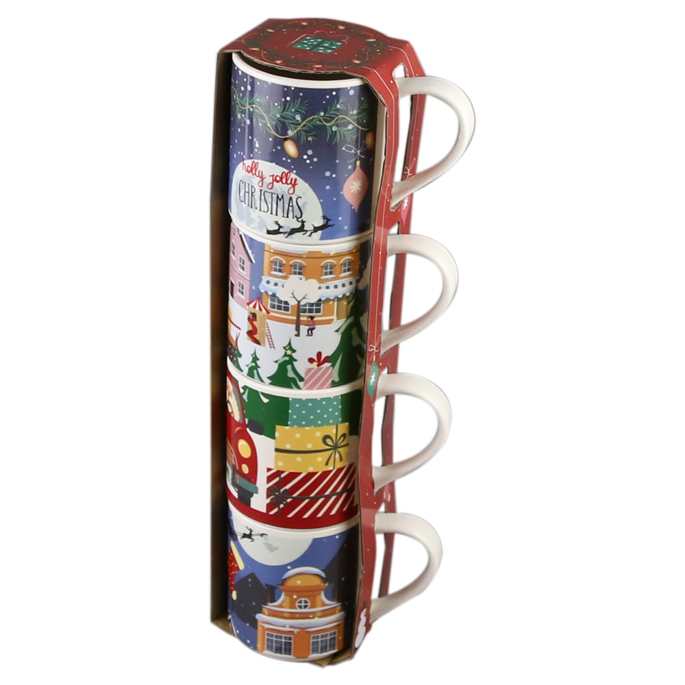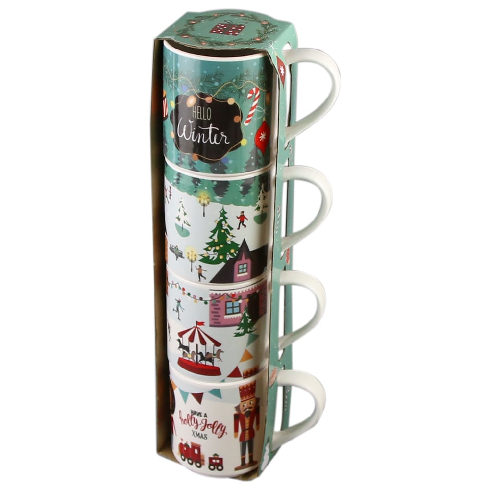 Set 4 cani de Craciun, din portelan 265 ml, Hello Winter/Holly Jolly Christmas