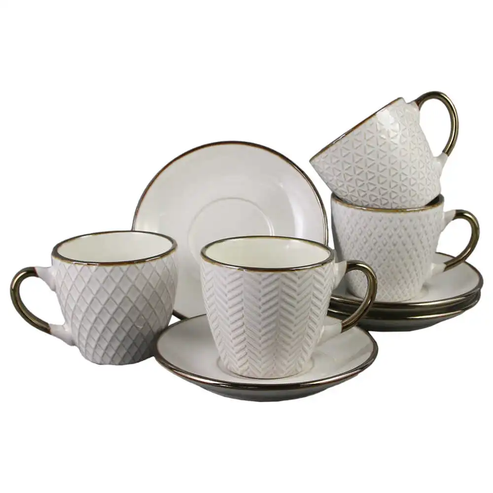 Set 4 cesti din portelan cu farfurii, 210 ml, Auriu