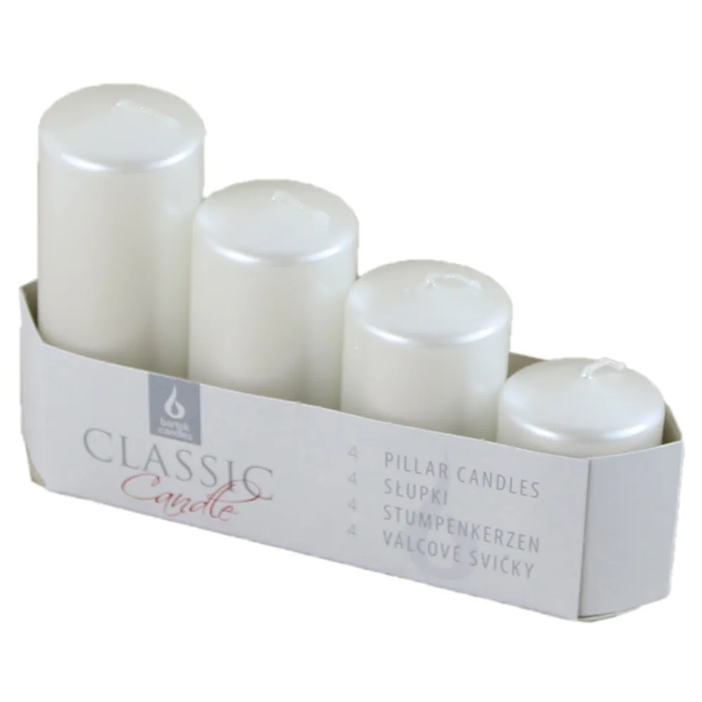 Set 4 lumanari advent Alb metalizat, 5.5/7/8.5/10 CM, Classic Candle