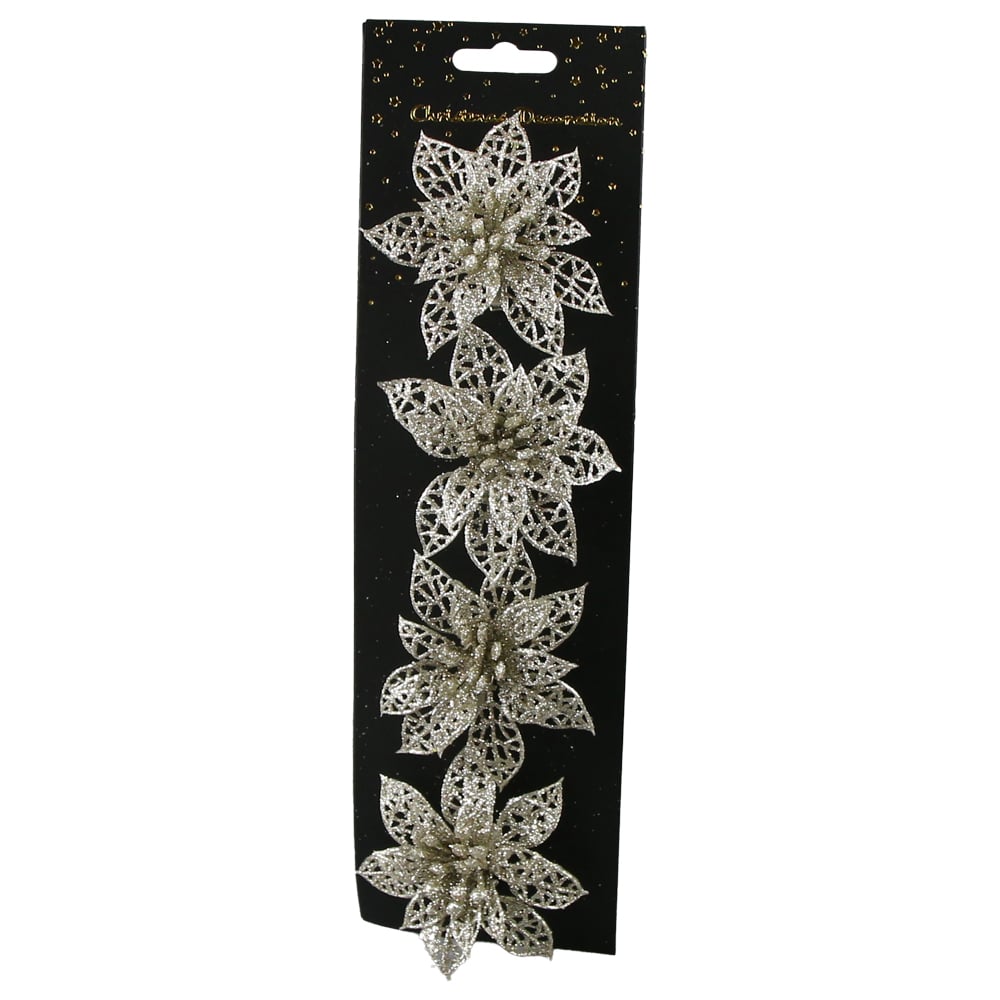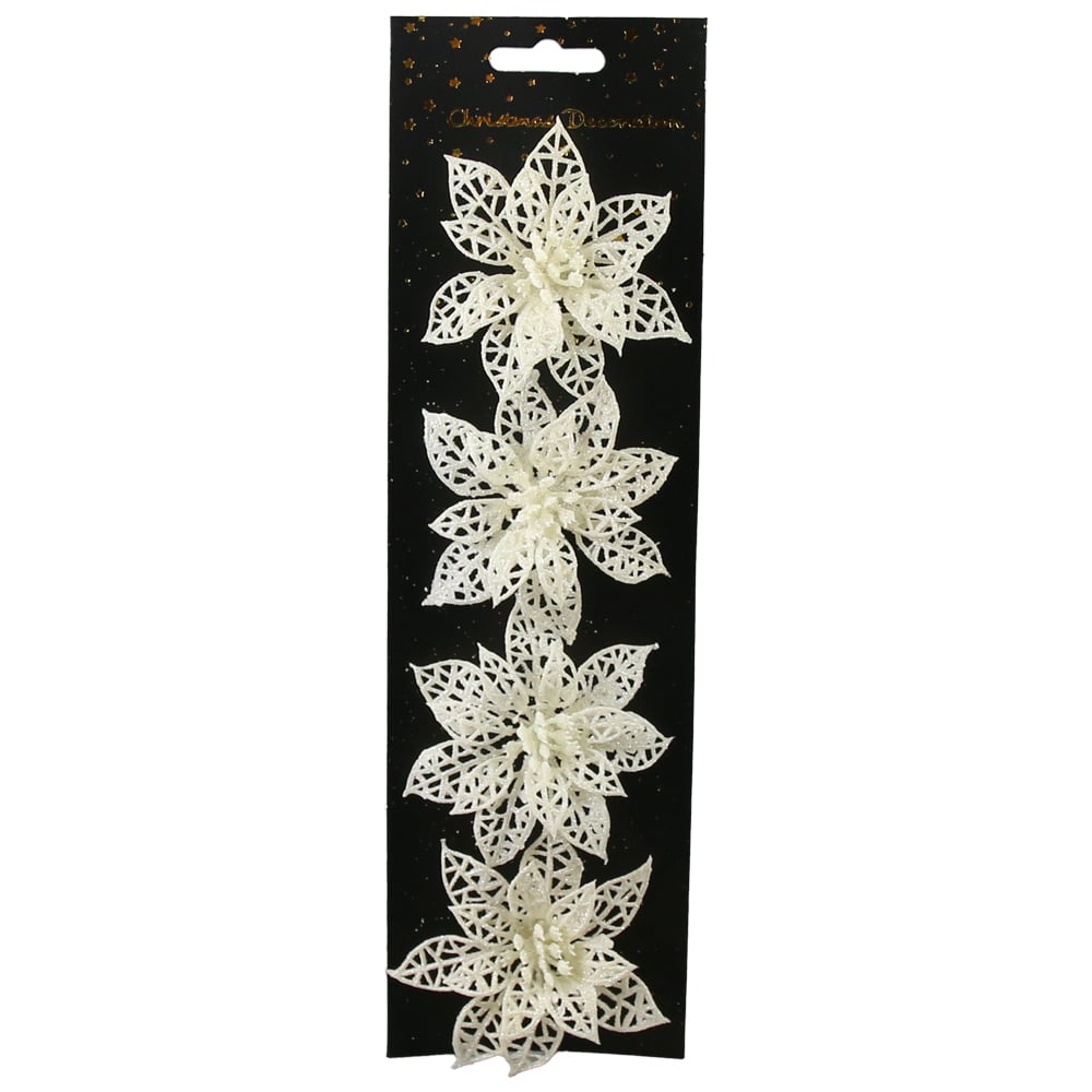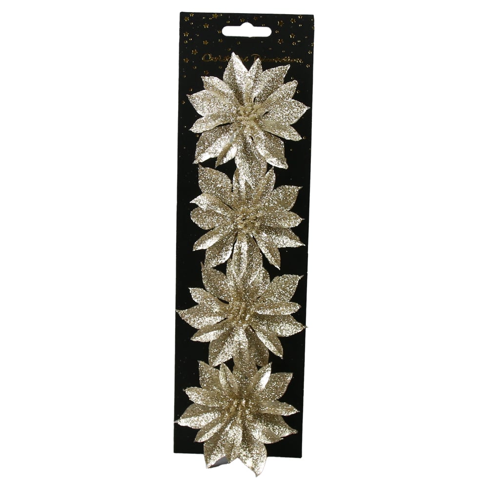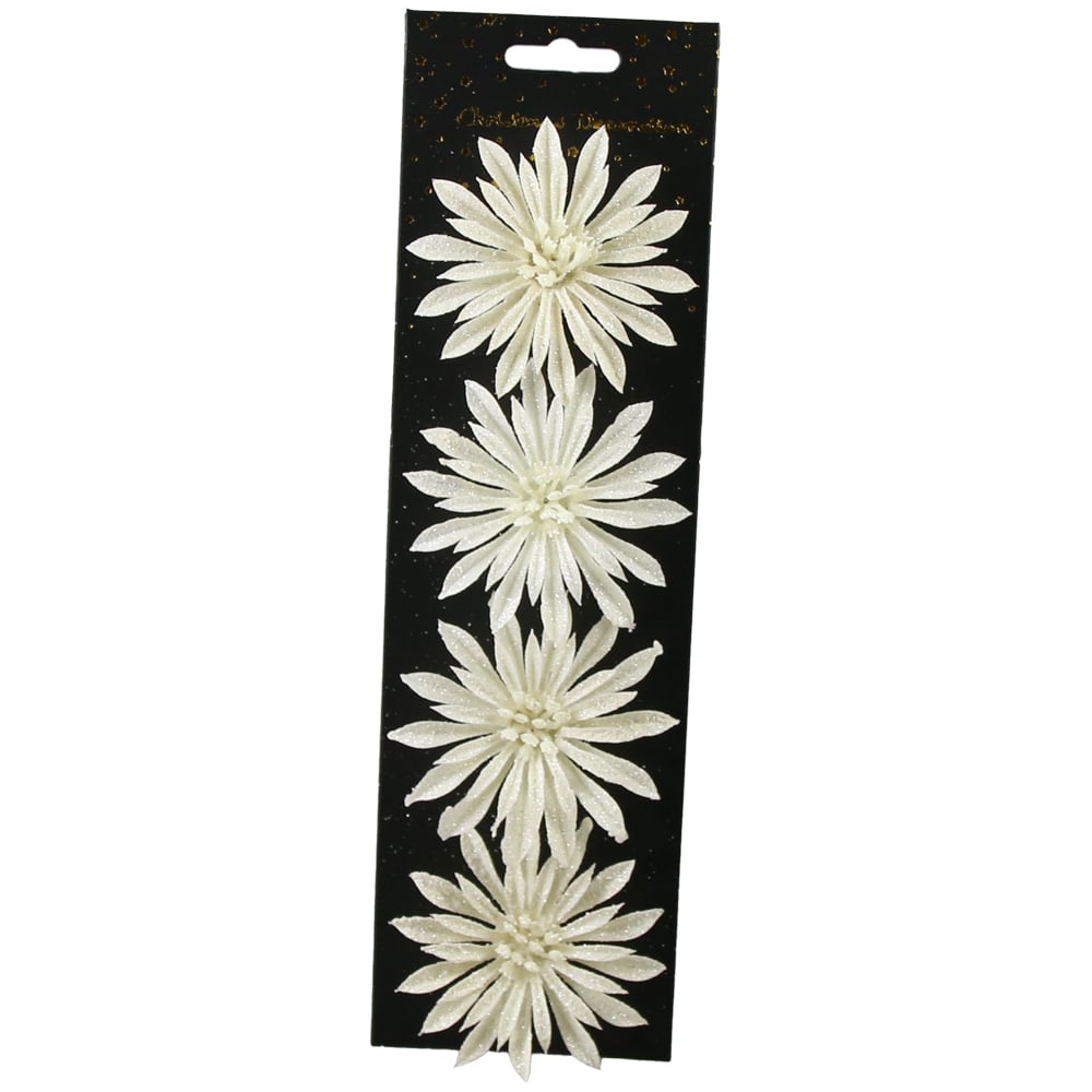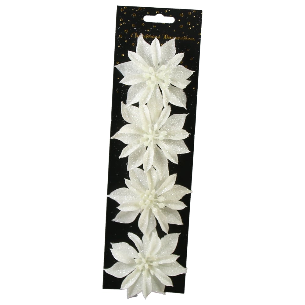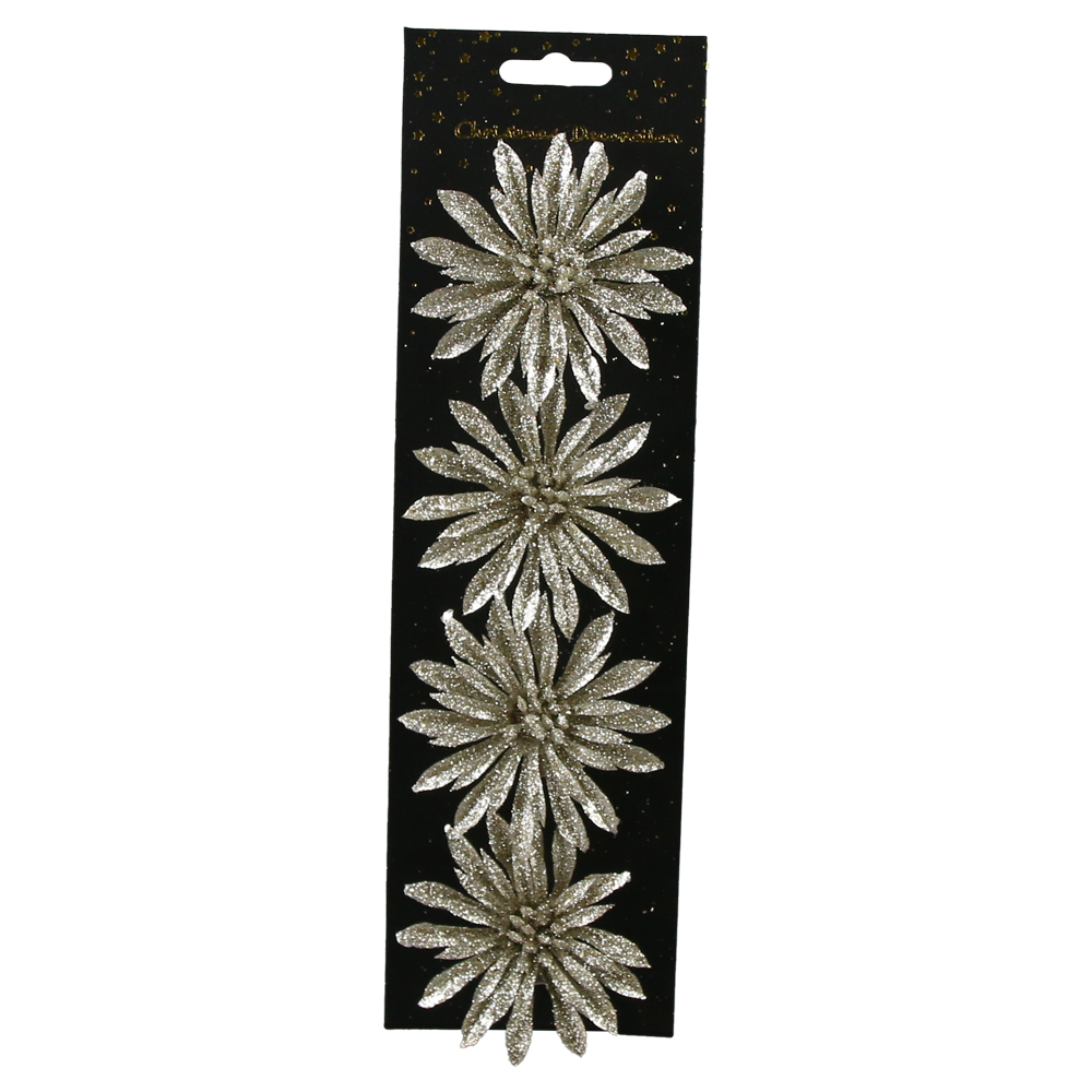 Set 4 ornamente de brad Floare cu glitter, 8 CM, culori/modele variate