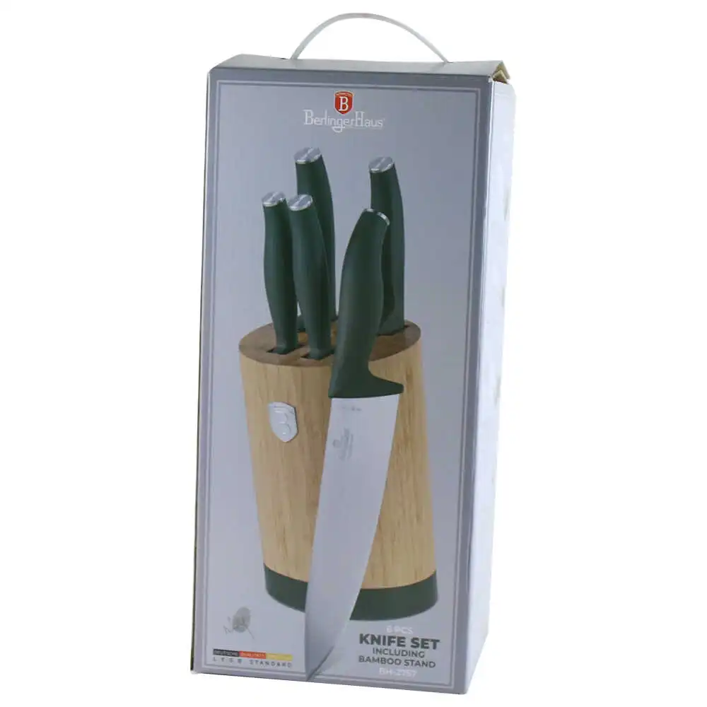 Set 5 cutite cu suport bambus, Matte Green, Berlinger Haus, rotund