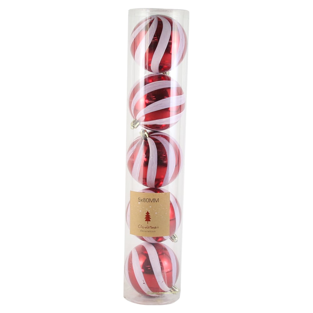 Set 5 globuri pentru brad din plastic 8 CM, Rosu/alb