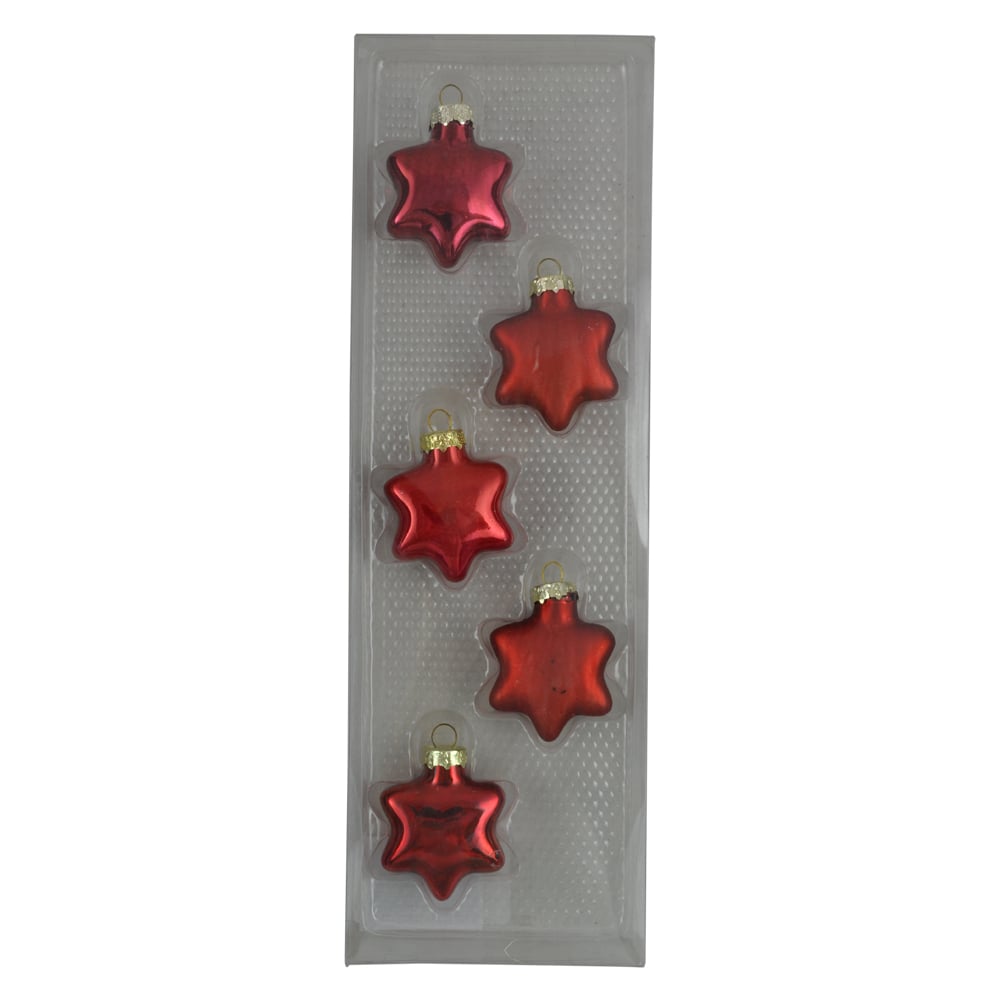 Set 5 globuri realizate din sticla in forma de stea pentru brad de craciun – Rosu – Nuante diferite
