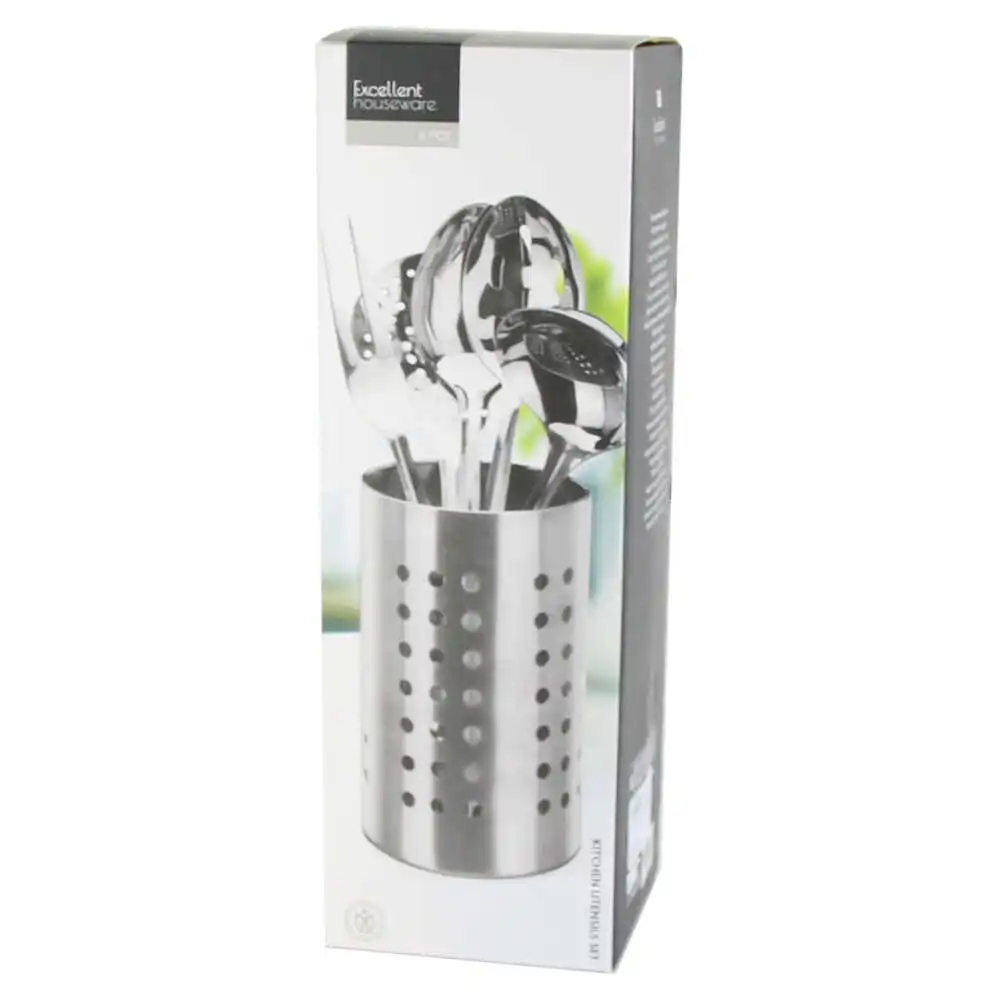 Set 5 ustensile bucatarie cu suport, inox, Excellent Houseware