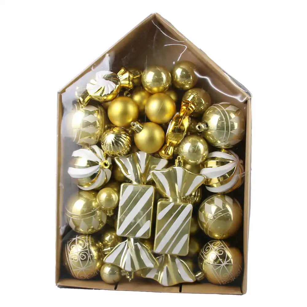 Set 58 globuri pentru brad, din plastic, aur/alb, Casuta