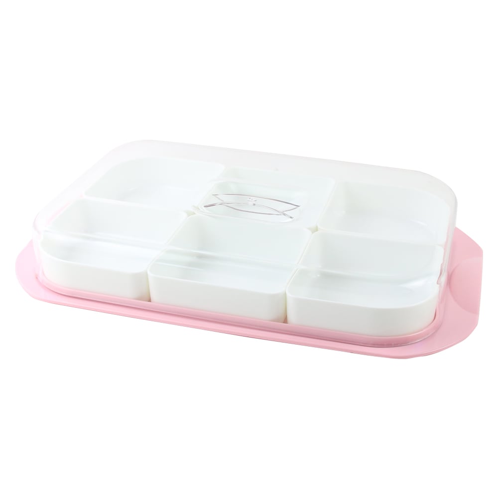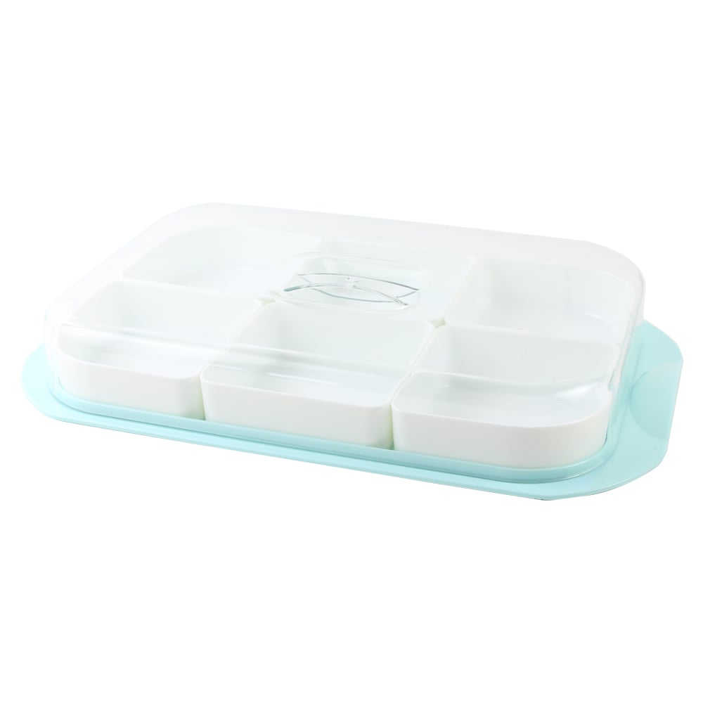 Set practic format din 6 boluri din plastic, asezate pe o tava de 35 x 21 cm, prevazuta cu capac pentru pastrarea alimentelor in conditii igienice. Ideal pentru servirea gustarilor, fructelor sau deserturilor, acasa sau la picnic.