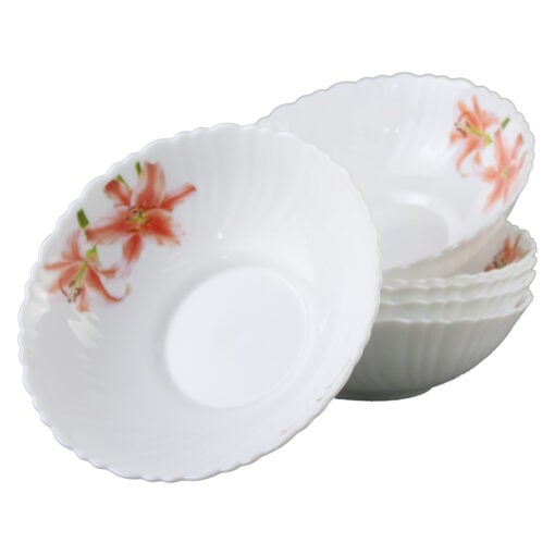 Set 6 boluri din sticla opal alb 17.5 x 5.5 cm, cu motive florale