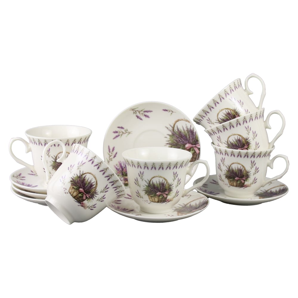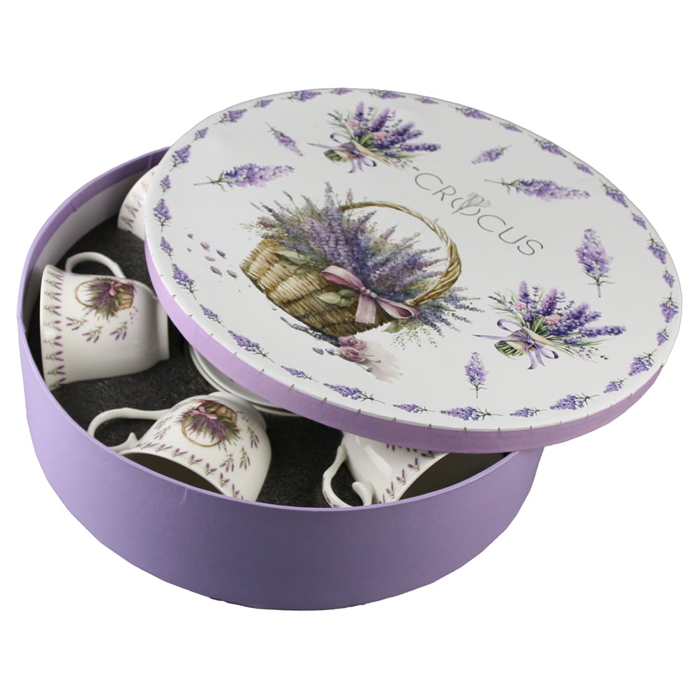 Set 6 cesti cu farfurii din portelan 250 ml „Basket of Flowers-Lavanda”, in cutie decorativa
