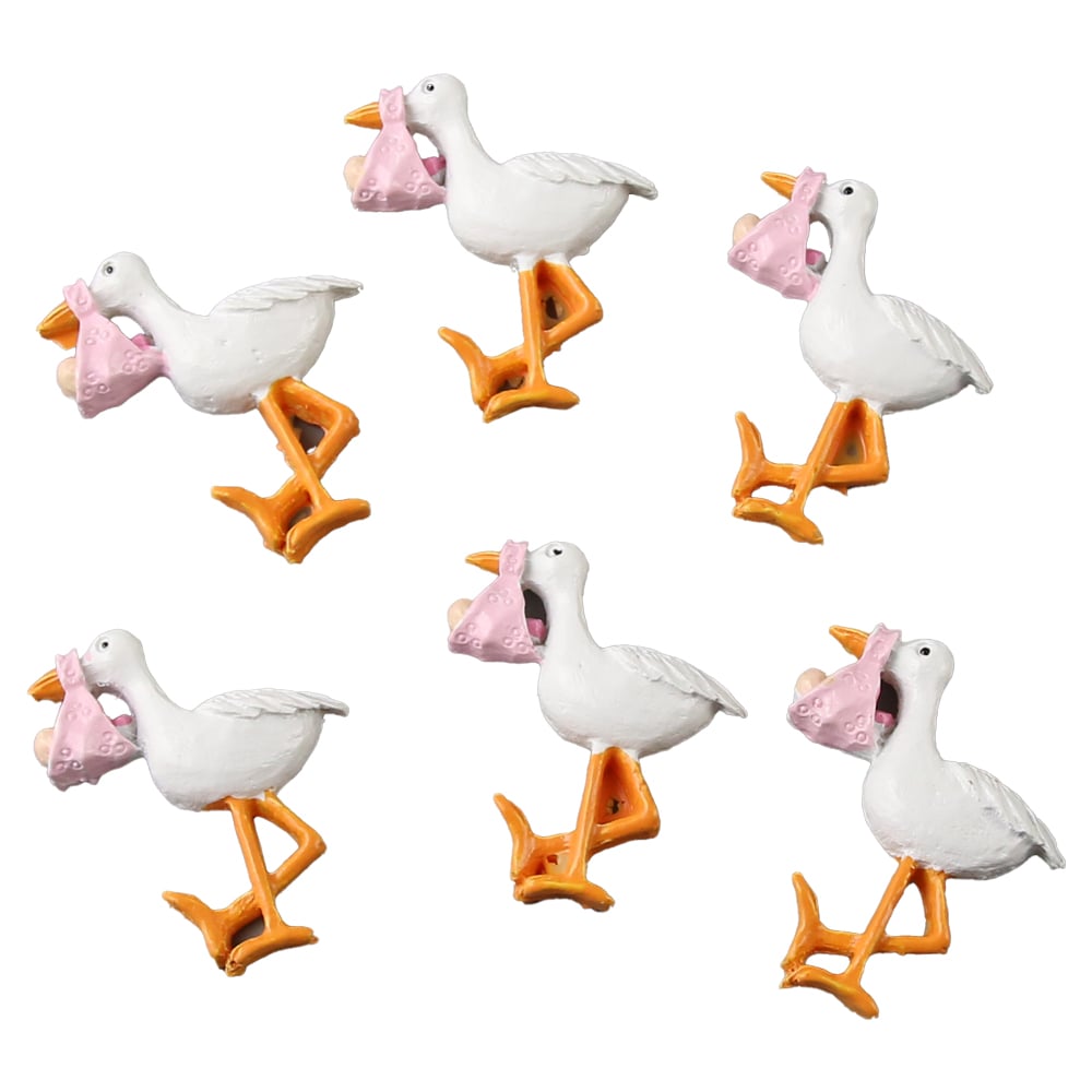 Set format din 6 decoruri din rasina reprezentand barza cu bebe, dimensiune 4.2 cm, in culorile albastru si roz, cu suport autoadeziv. Ideal pentru decoratiuni tematice, proiecte