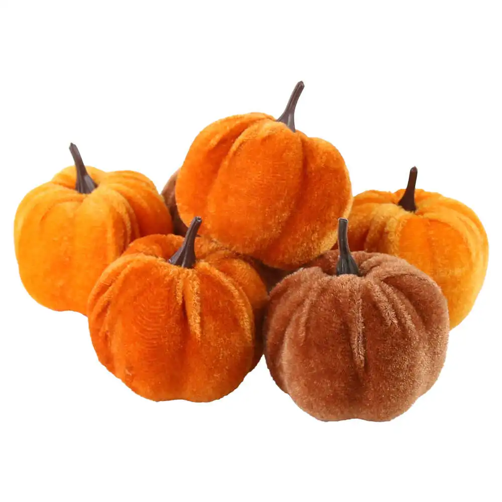 Set 6 dovlecei decorativi din polistiren & textil, 7 CM, portocaliu