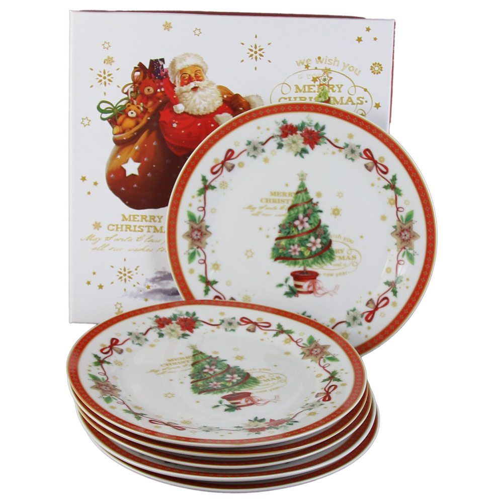Set 6 farfurii desert 19 CM, „Merry Christmas” Brad, in cutie decorativa