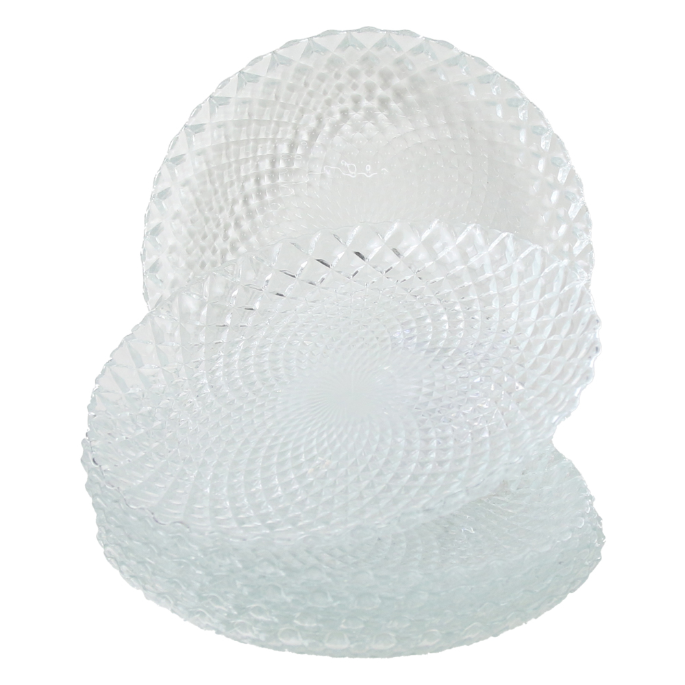 Set de 6 farfurii pentru desert, din sticla, diametru 18.5 cm. Perfecte pentru servirea dulciurilor sau gustarilor.