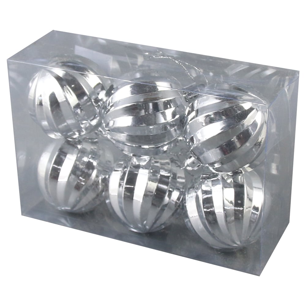 Set 6 globuri argintii pentru brad, din plastic, 6 CM