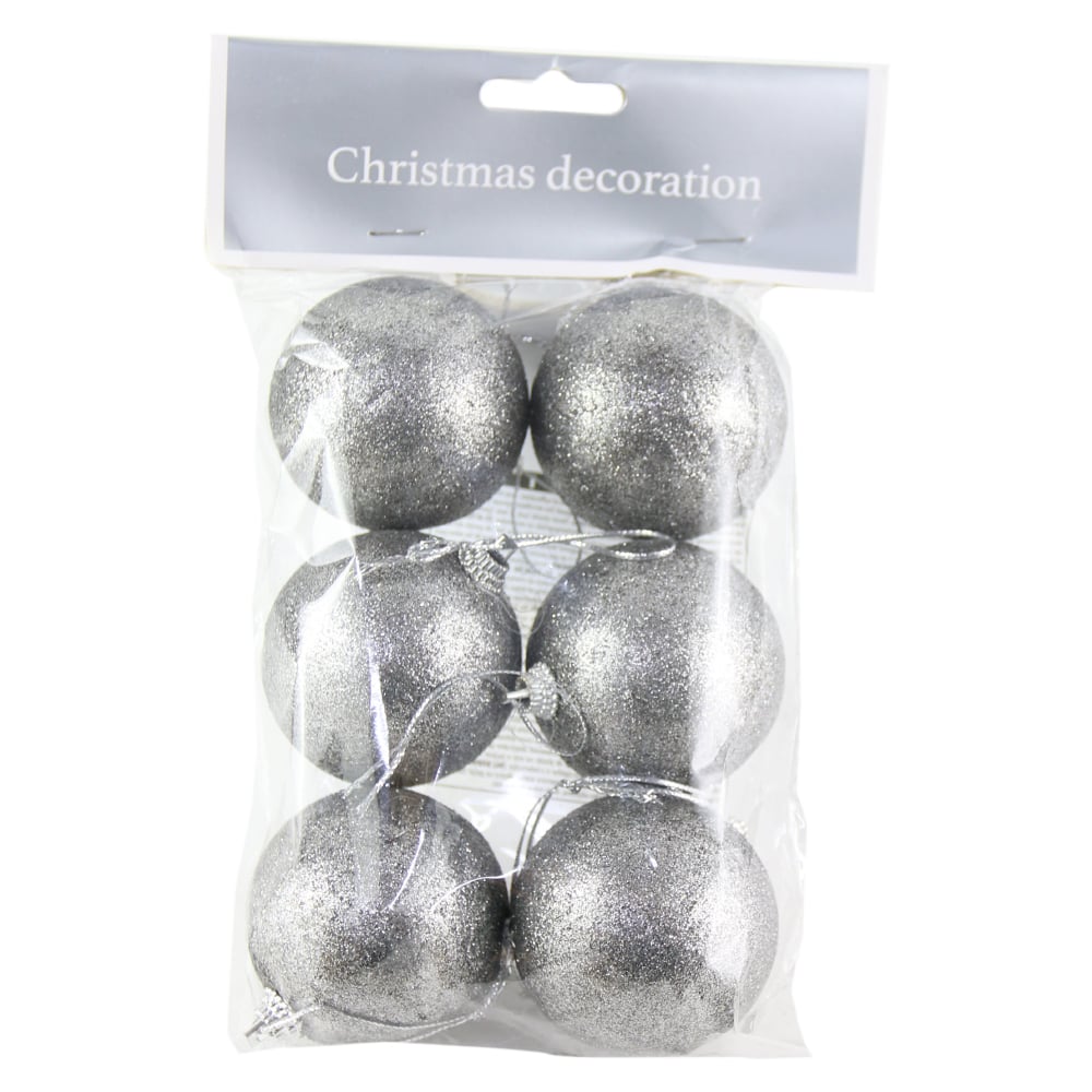 Set 6 globuri din plastic cu glitter 6 CM, Argint