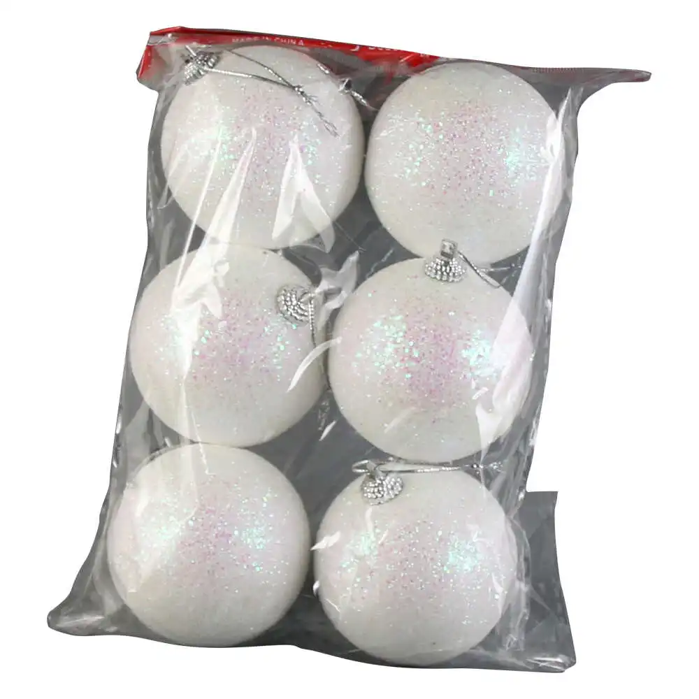 Set 6 globuri pentru brad cu glitter, din plastic, 6 CM, Alb