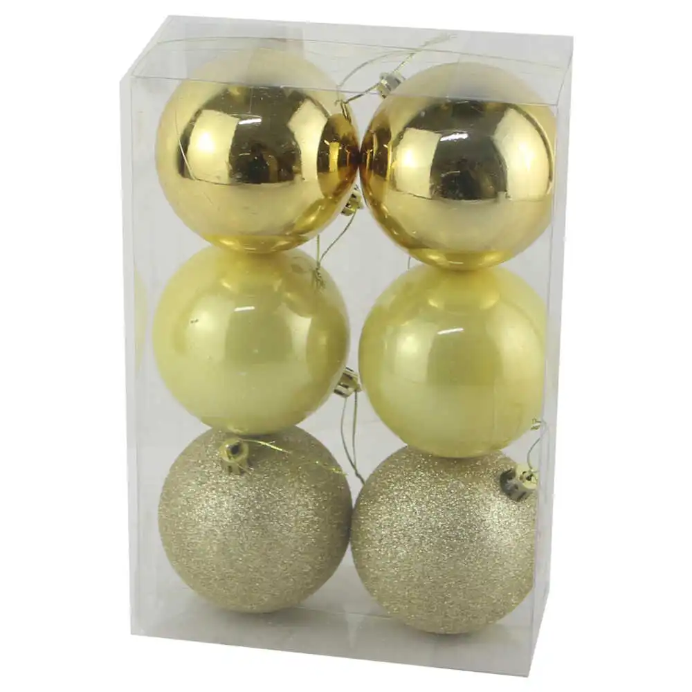Set 6 globuri pentru brad din plastic auriu 8 CM