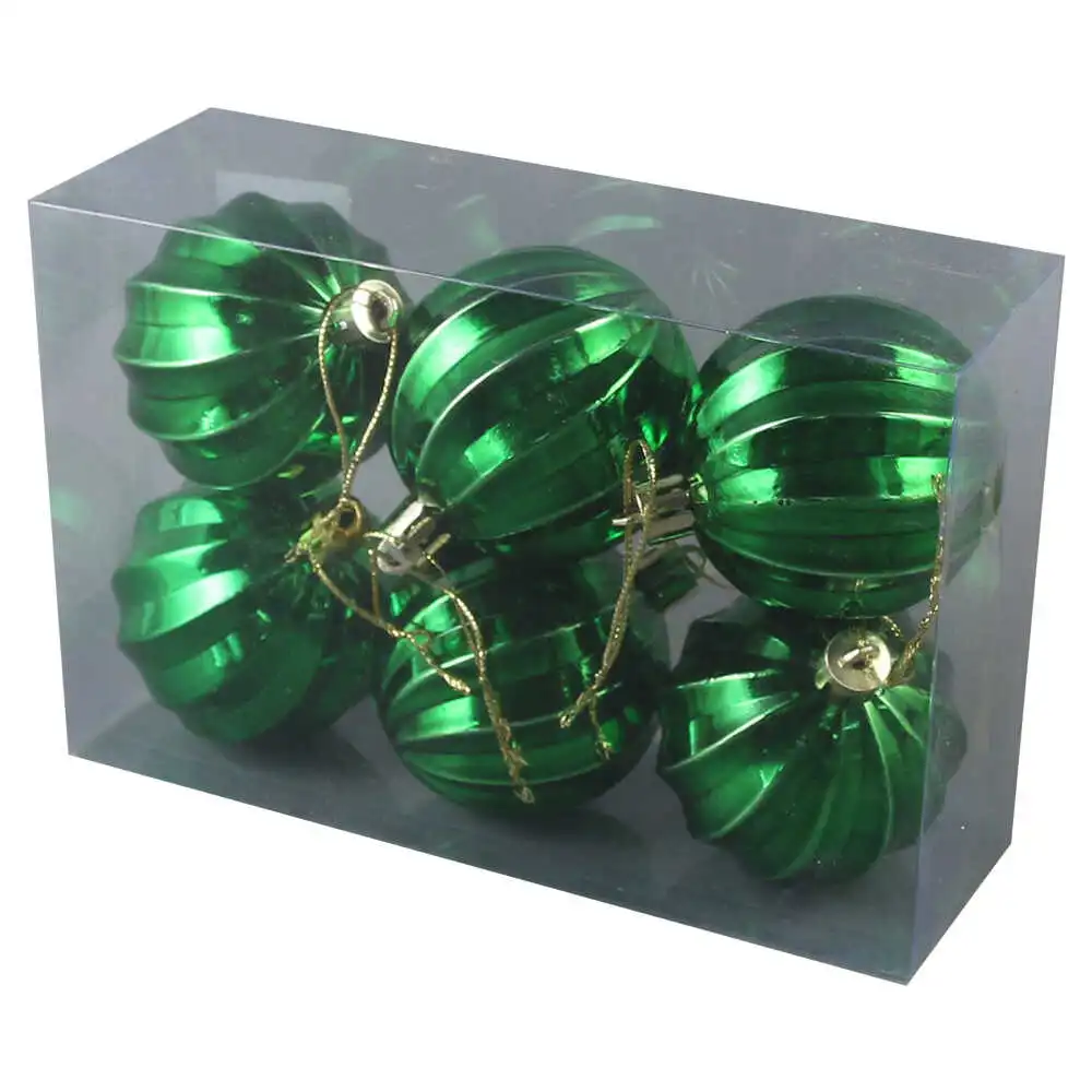 Set 6 globuri verzi pentru brad, din plastic, 6 CM