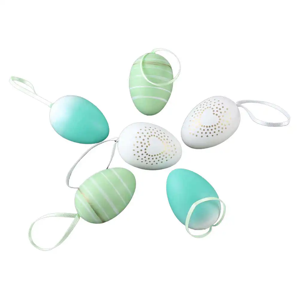 Set 6 oua din plastic 4×6 cm, albe & verzi, cu dungi si inimioare