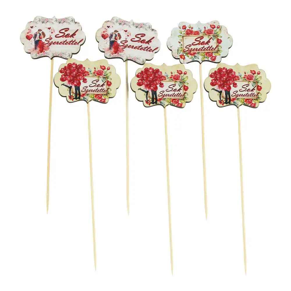 Set 6 pick tablite decorative „Sok szeretettel” 7×24 CM, diferite mesaje