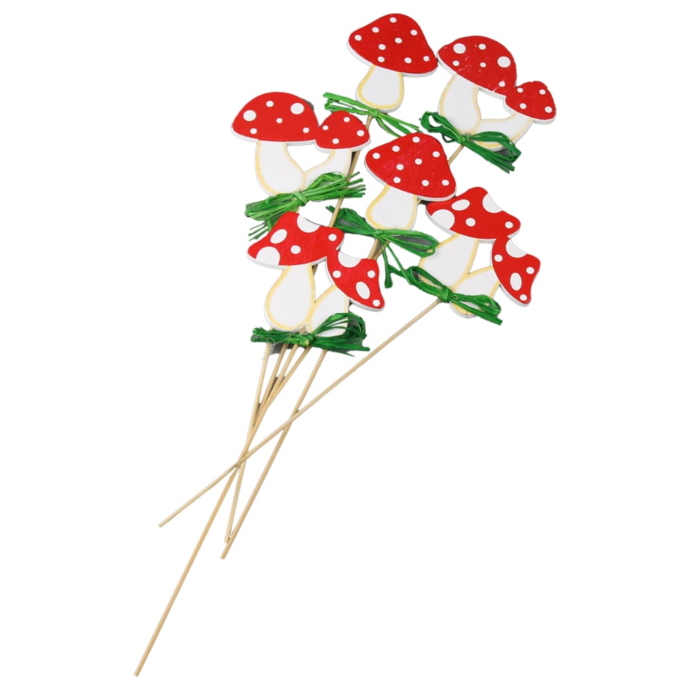 Set 6 pick-uri decorative Ciuperci din lemn 8×26 cm