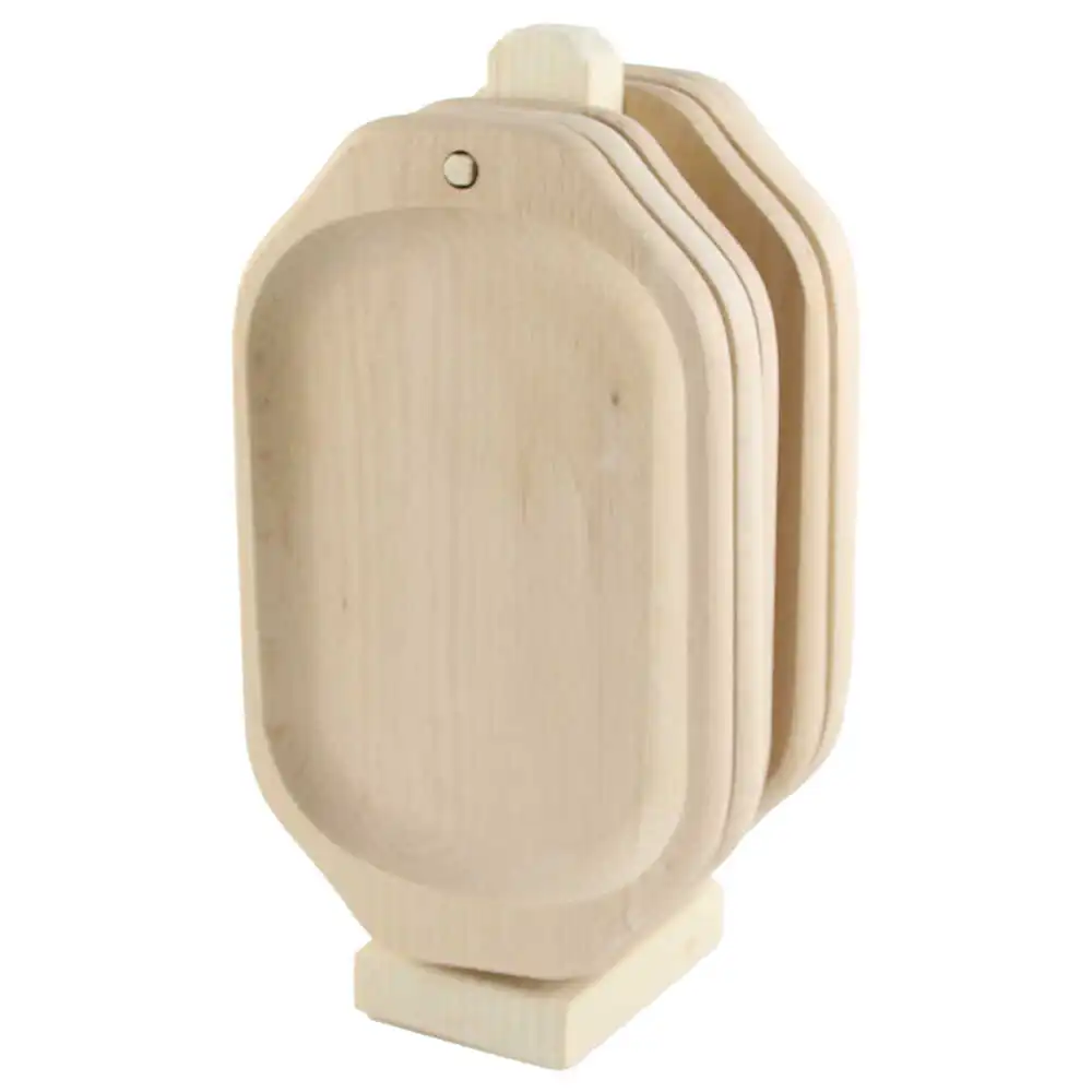 Set 6 platouri din lemn 14×22 CM, cu suport