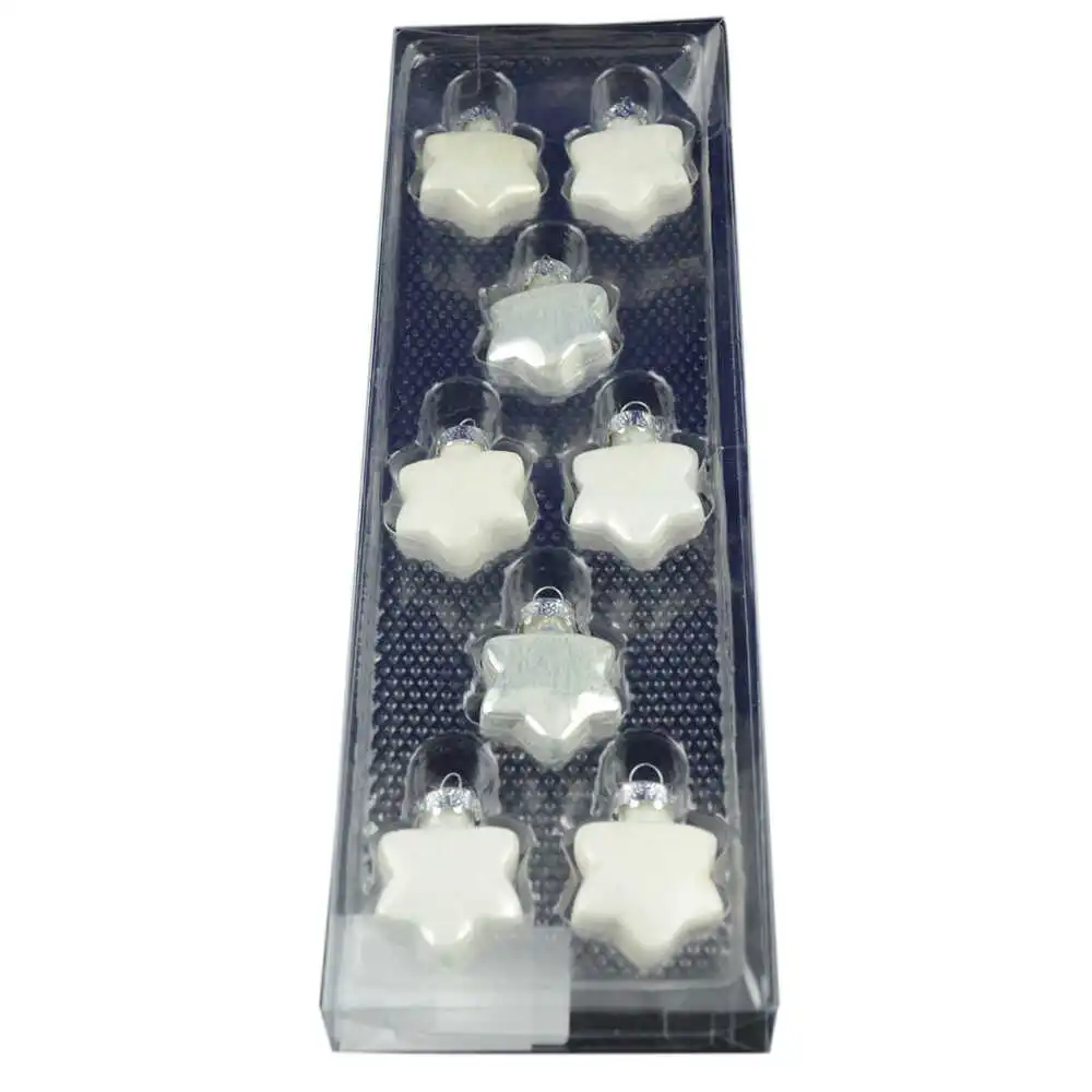 Set 8 globuri realizate din plastic in forma de stea pentru brad de craciun – Diferite modele (Alb)