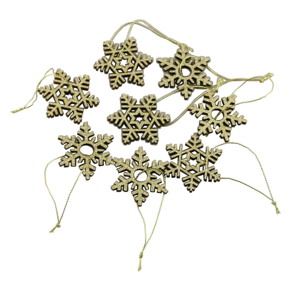 Set 8 ornamente de brad din lemn Fulg de nea 5.5 CM, glitter auriu