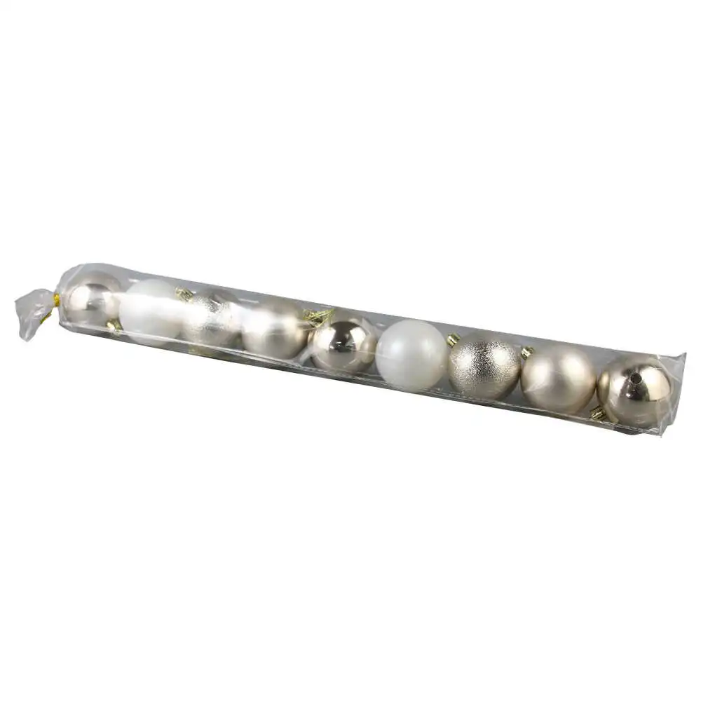 Set 9 globuri pentru brad, din plastic 6 CM, Auriu/crem