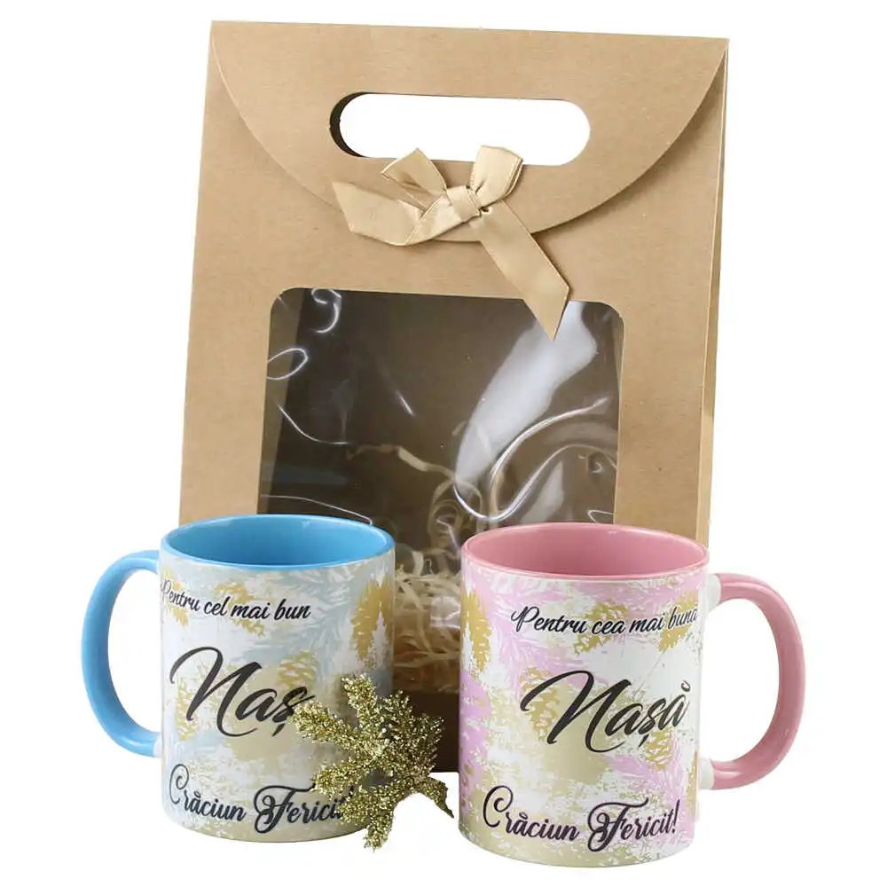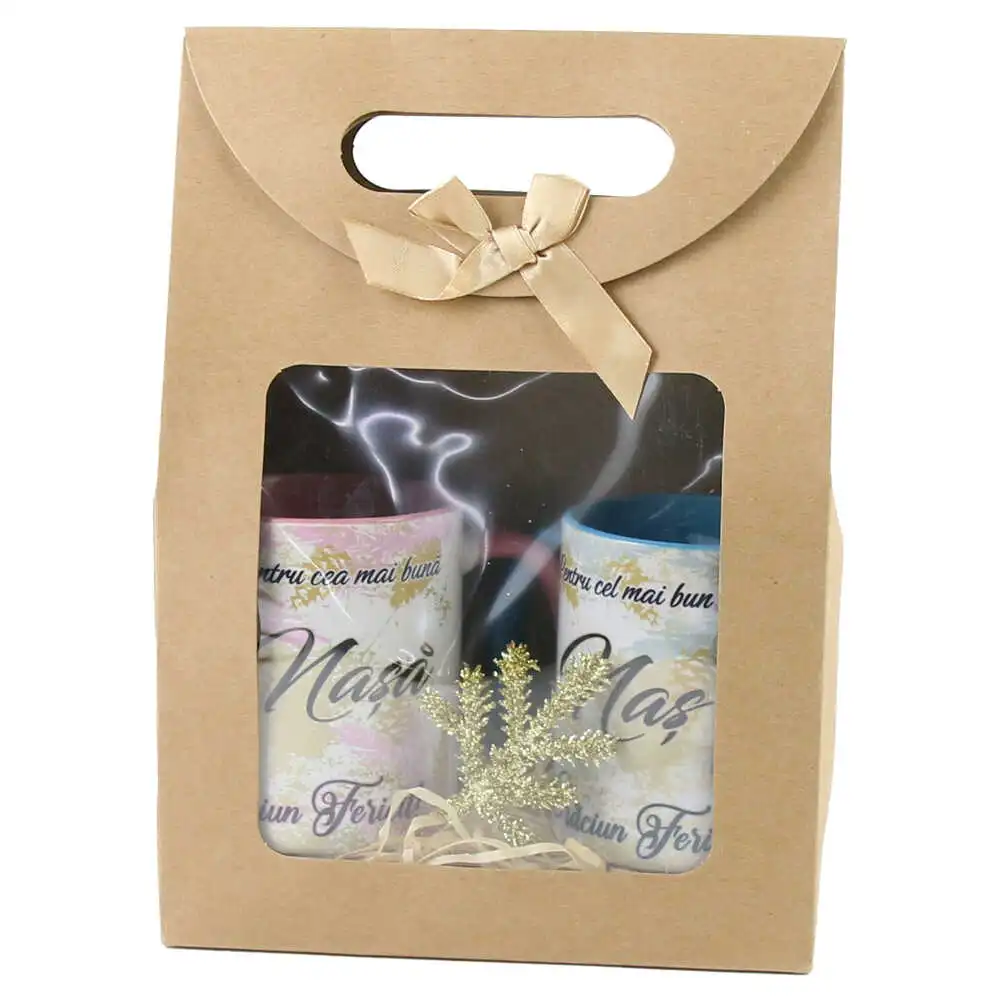 Set cadou 2 Cani „Nasa/Nas, Craciun Fericit!”, cu punga cadou