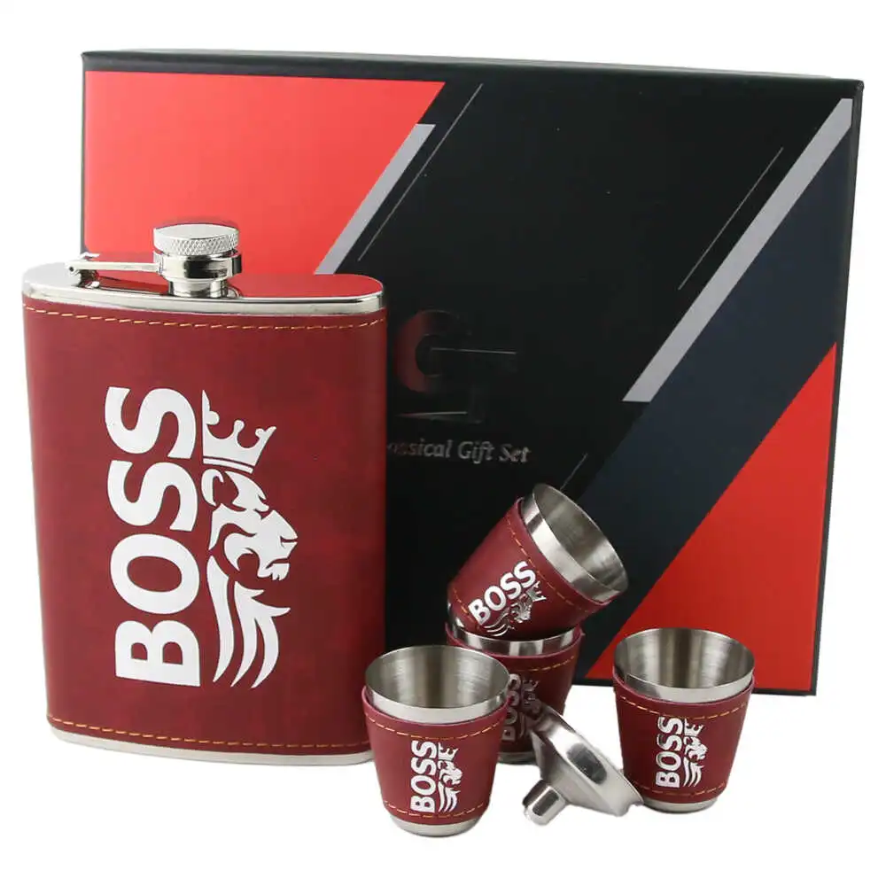 Set cadou „Boss” Plosca cu 4 pahare si palnie, 250 ml, Lion