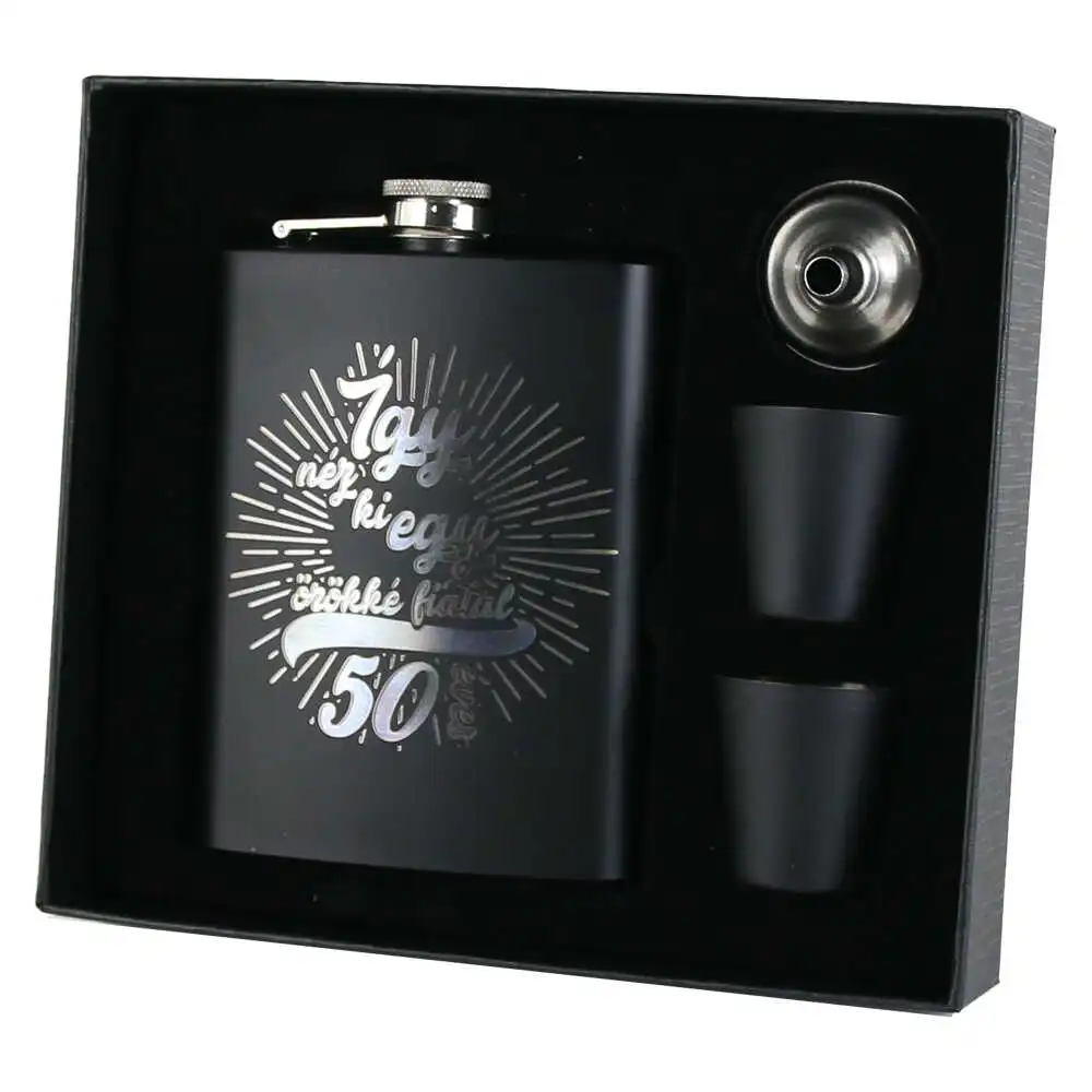Set cadou „Igy nez ki egy orokke fiatal 50 eves”, Plosca cu palnie si 2 pahare