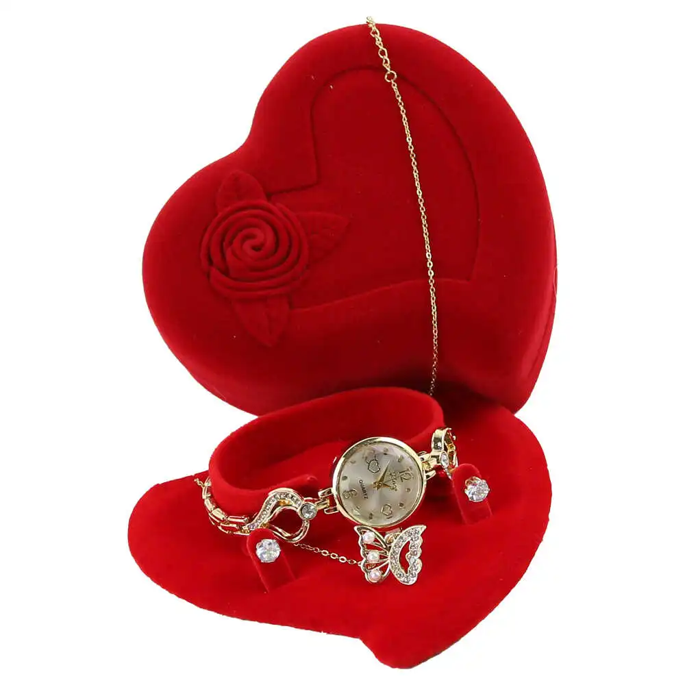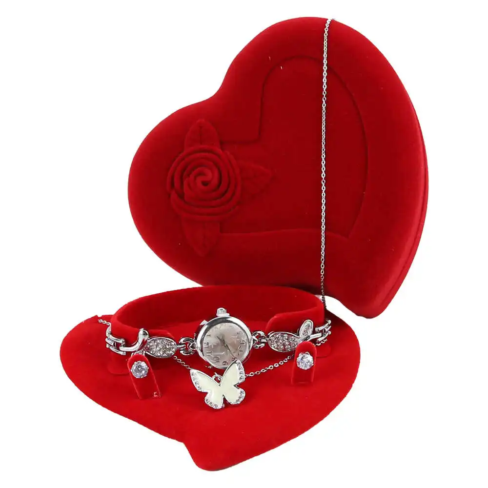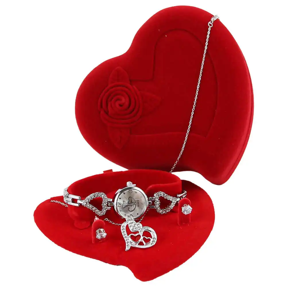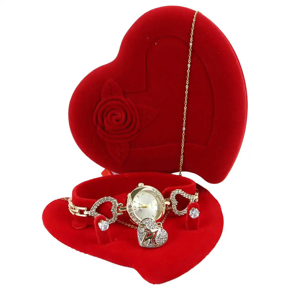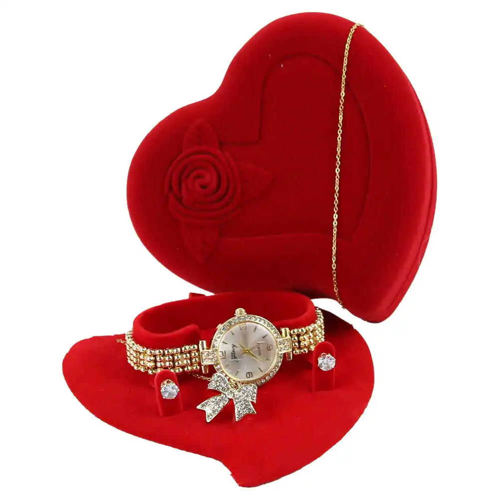 Set cadou pentru femei 3 piese – Ceas, colier, cercei, in cutie eleganta inimioara