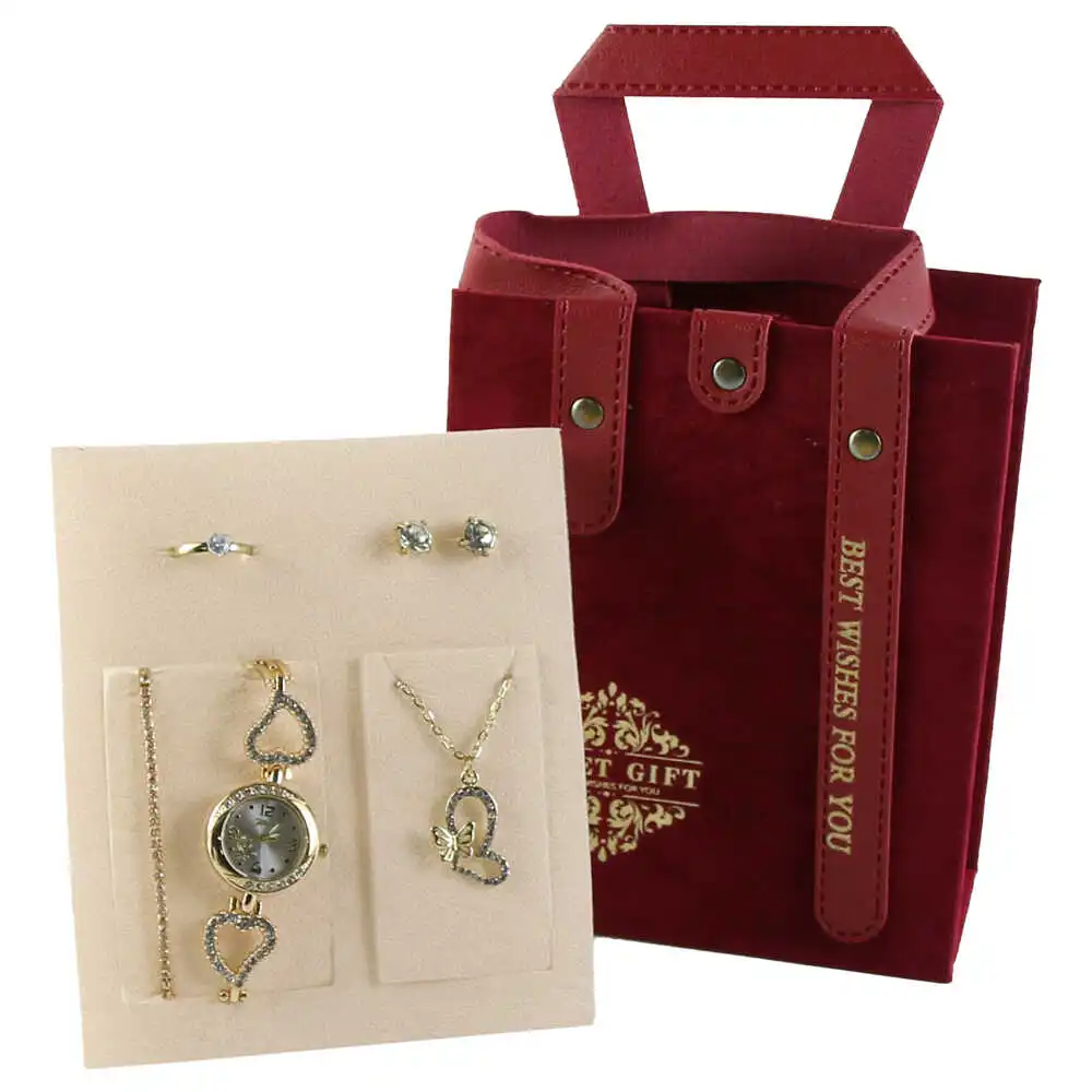 Set cadou pentru femei 5 piese – Bratara, ceas, inel, colier, cercei „Best wishes for you”