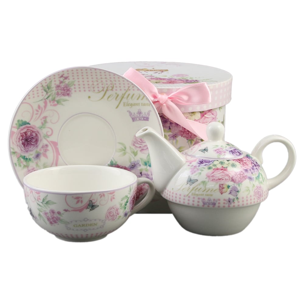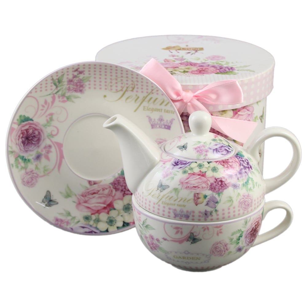 Set ceainic cu ceasca si farfurioara, 350 ml / 310 ml, in cutie decorativa, Garden