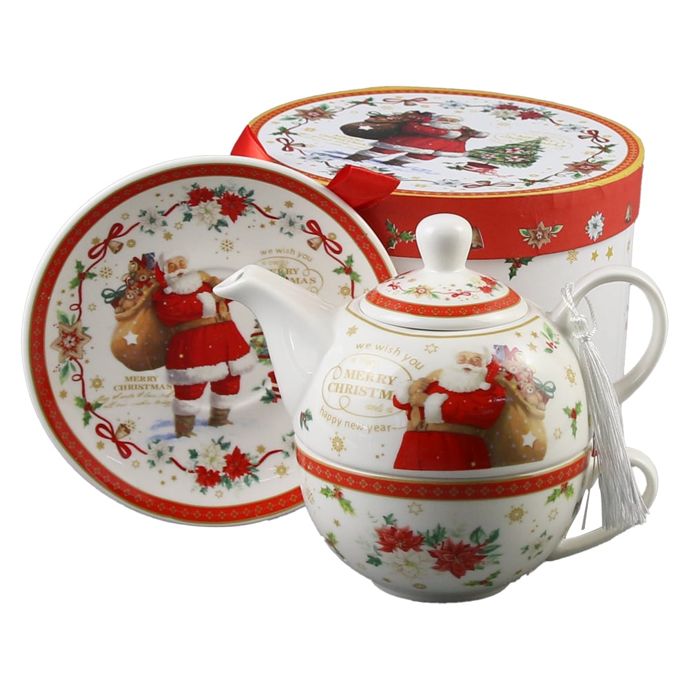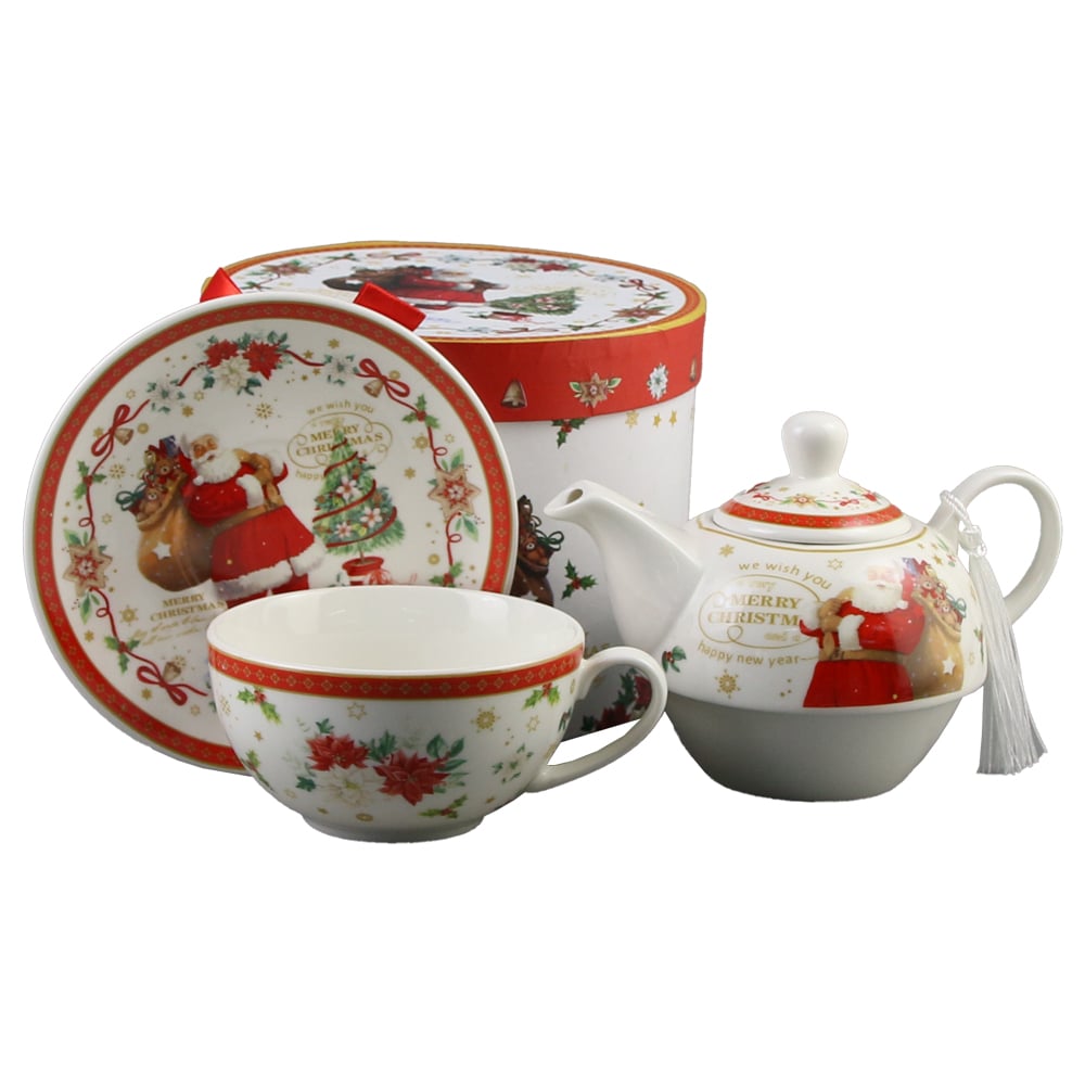 Set ceainic cu ceasca si farfurioara 350 ml/310 ml, „Merry Christmas”, in cutie decorativa