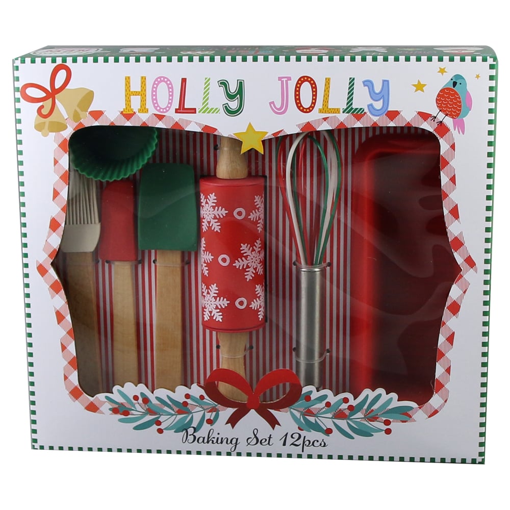 Set pentru copt prajituri de Craciun, 12 piese, Holly Jolly