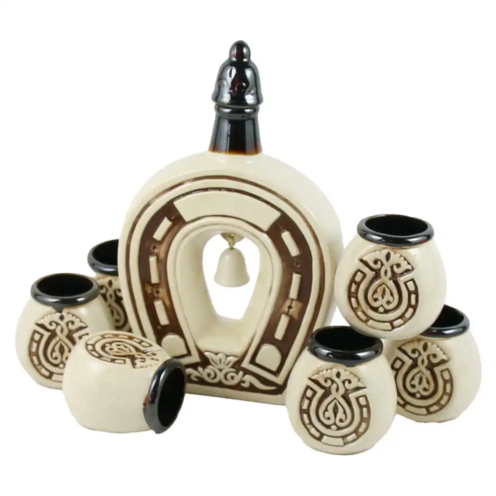 Set pentru vin, din ceramica, cu 6 cani, Potcoava cu clopotel