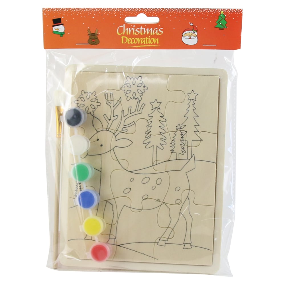 Set pictura + puzzle de Craciun din lemn, cu vopsea si pensula