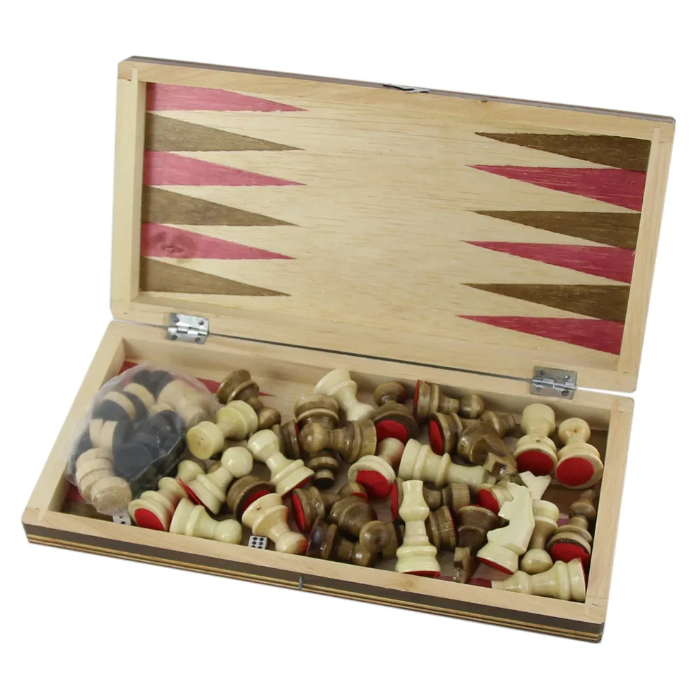 Set Sah din lemn 3 in 1 (Sah, Table/Dame) 26×13 CM